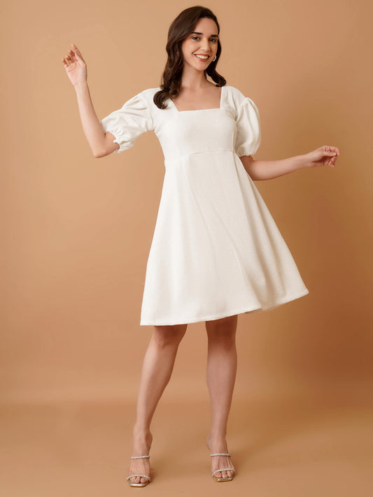 WhiteWhite shimmer Mini Dress with Puff SleevesRegular price Rs. 1,299.00Regular priceUnit price / per