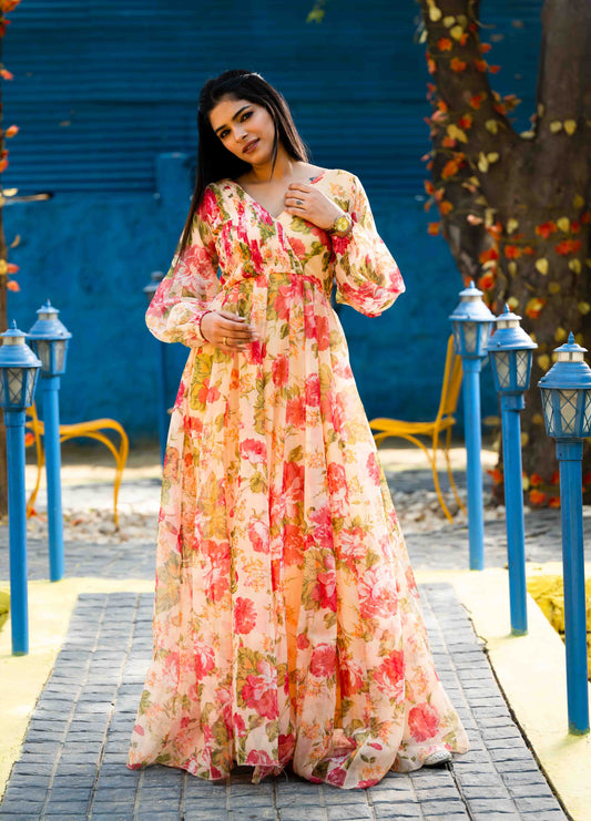 Xs S M L XlMAGNETISM Organza Full Flared Floor Length Printed Gown for WomenRegular price From Rs. 2,400.00Regular priceUnit price / per
